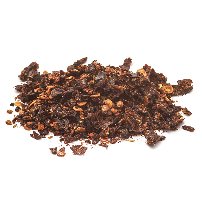 Naš čili je chipotle tipa Morita koji se dimi kraće kako bi zadržao puniji, voćniji okus—za razliku od tradicionalnog meksičkog smeđe osušenog chipotlea Meco koji se dimi dulje od tjedan dana.